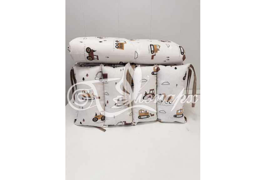 • Бортик-заборчик стеганый плотно забит синтепухом (на замочках): - 2 шт. 60х34 см / - 2 шт. 120х34 см.